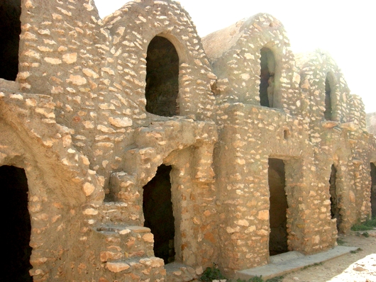 Les ksour (pluriel de ksar) étaient des forteresses construites en haut des montagnes pour protéger les récoltes des nombreux pillards. Des alvéoles recueillaient le fourrage, l’huile et les céréales et constituaient ainsi plusieurs greniers sur lesquels veillait un gardien.